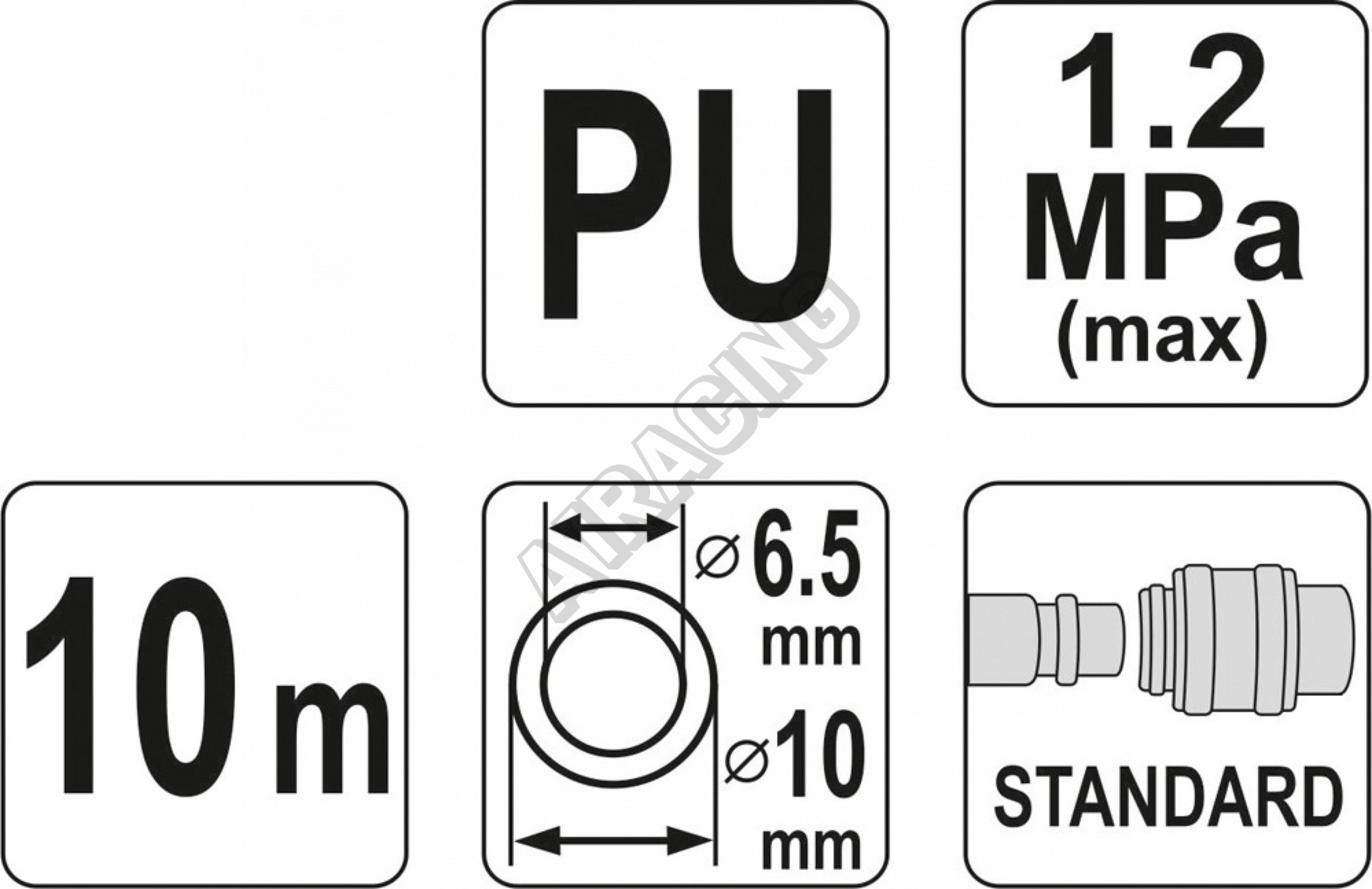 Profesionální spirálová vzduchová hadice s délkou 10 m zakončená rychlospojkami. Hadice je zhotovená