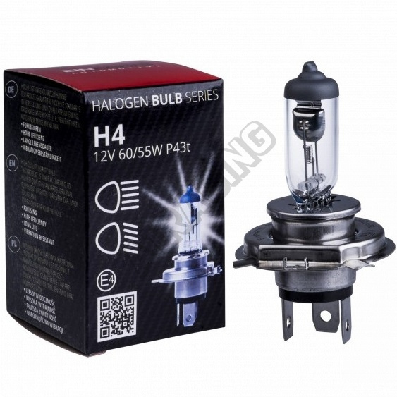 Halogenová žárovka H4 12V 55W UV (E4) Specifikace: Typ žárovky: H4 Jmenovitý výkon: 55/60 W Homolo