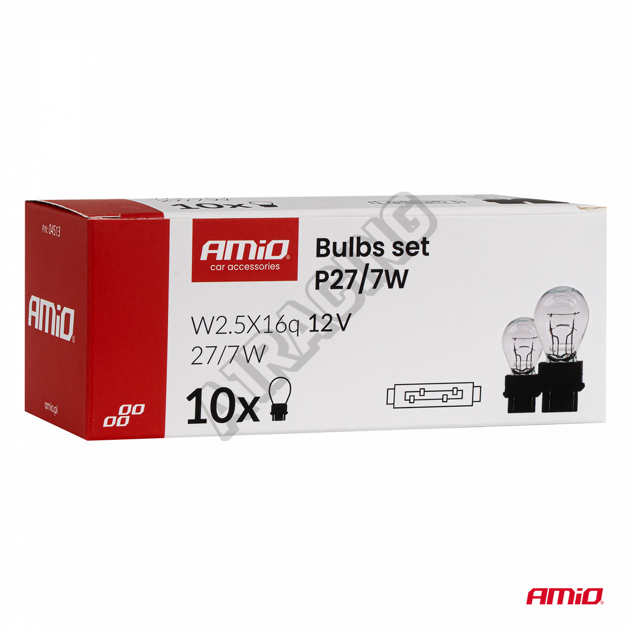 Halogenové žárovky P27/7W 12V 27/7W W2.5X16q 10ks. AMIO-04513
