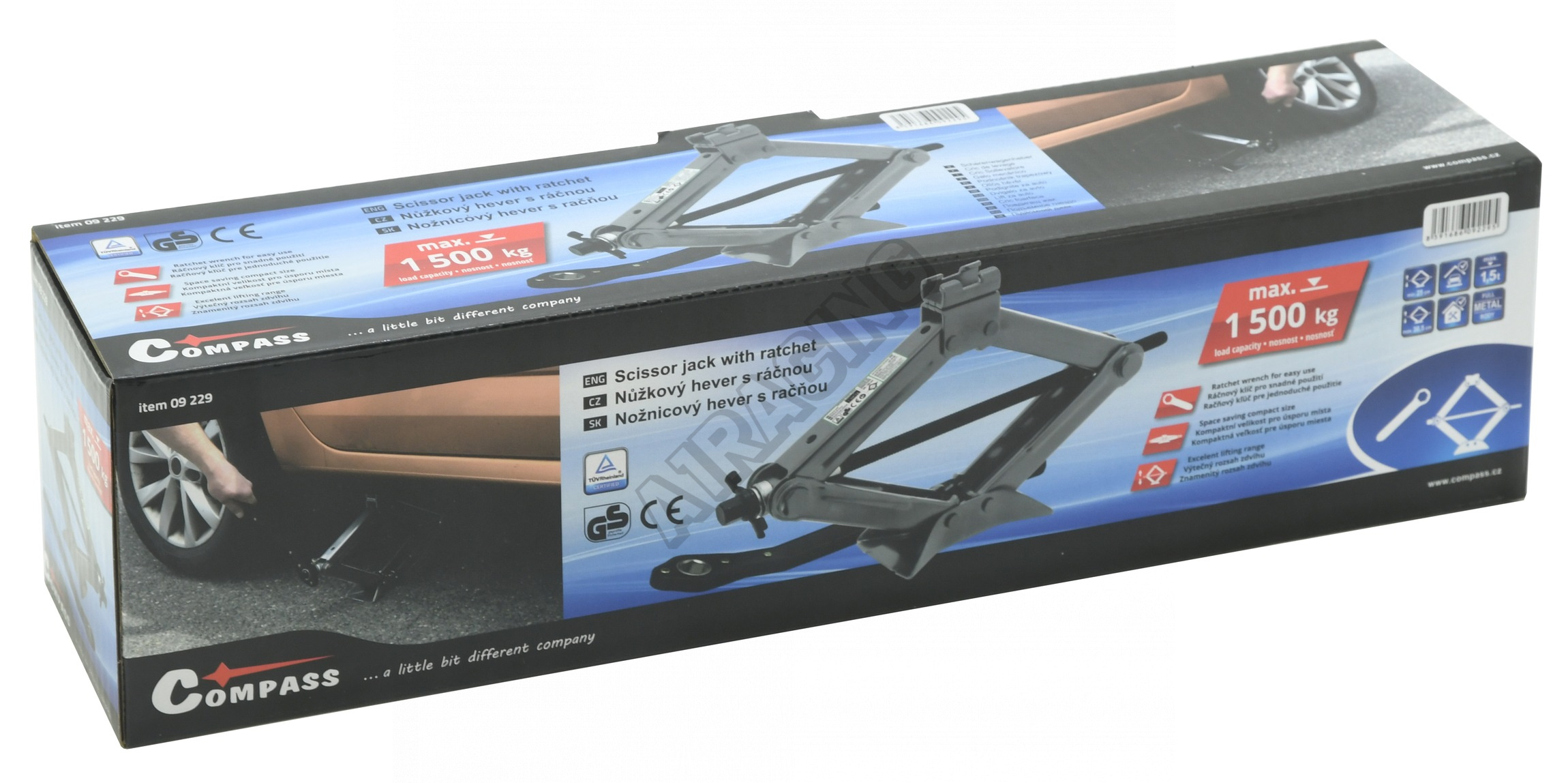 Hever nůžkový s ráčnou 1500 kg TÜV, GS, CE (s ráčnovým klíčem)