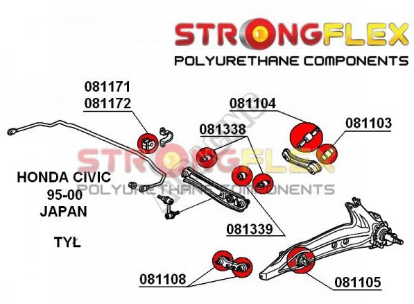 Honda Civic 1996-2000 StrongFlex sestava silentbloků jen pro zadní nápravu 16 ks obsahuje :