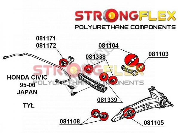 Honda Civic 1996-2000 StrongFlex Sport sestava silentbloků jen pro zadní nápravu 18 ks obsahuje :