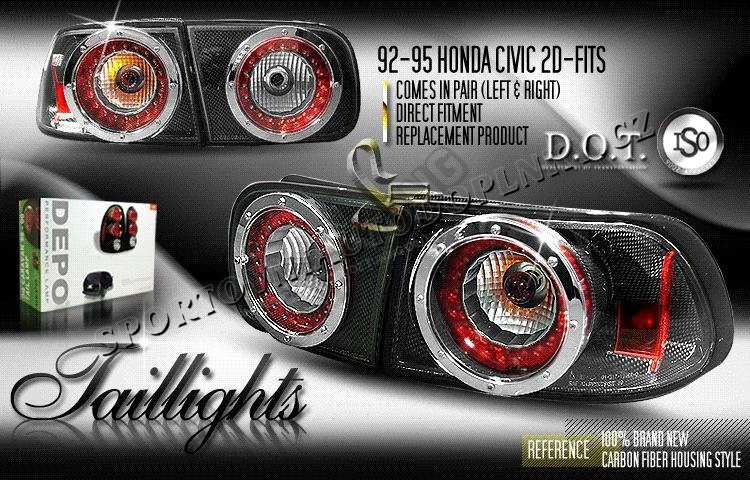 HONDA CIVIC COUPE 2 DR 1996-2000 DEPO CARBON FIBER L.E.D. TAIL LIGHTS