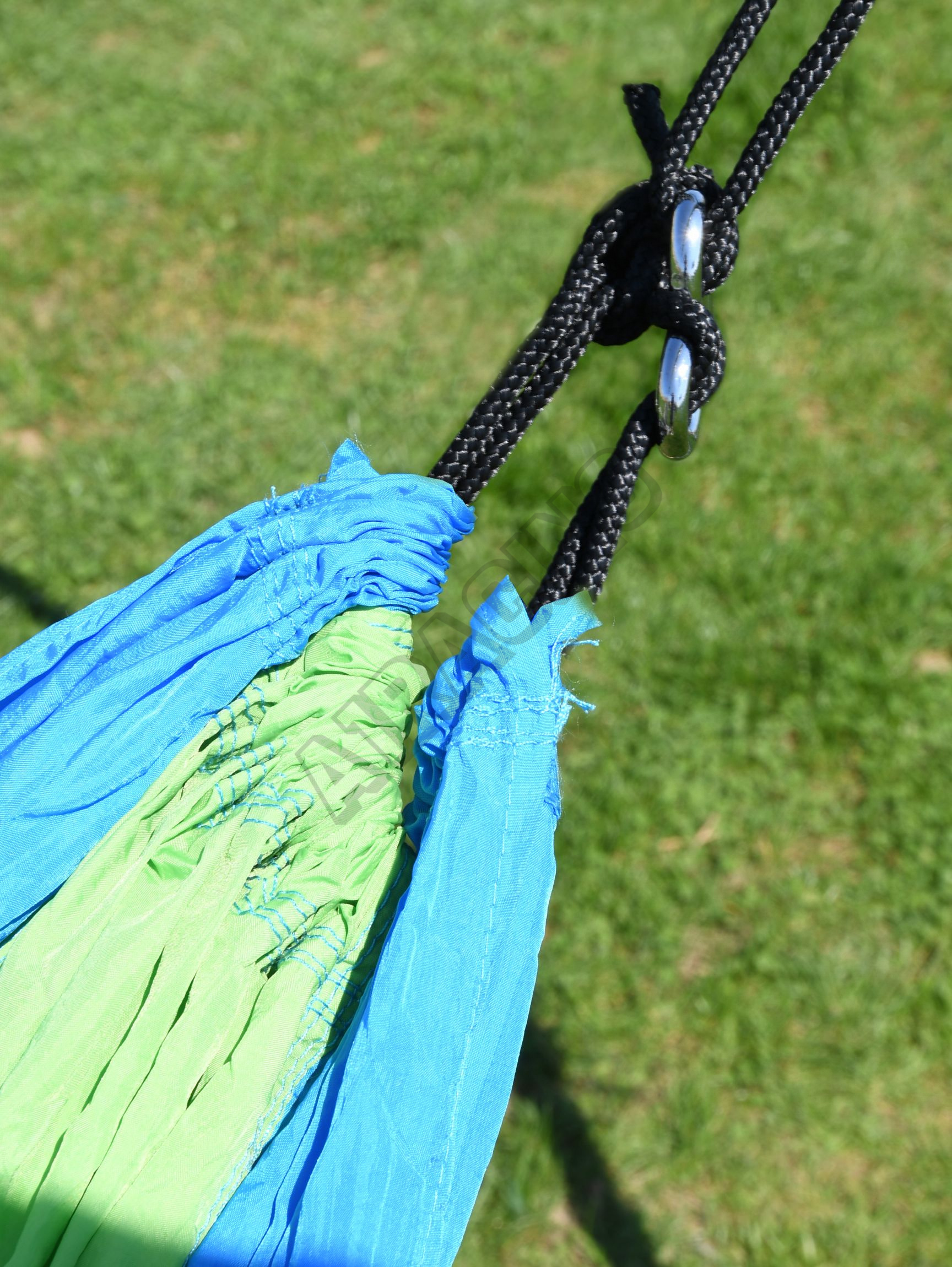 Síť je na obou koncích osazena háčkem pro jednoduché a rychlé zavěšení na provaz. Provazy jsou zhotoveny z měkkého a pružného vlákna.