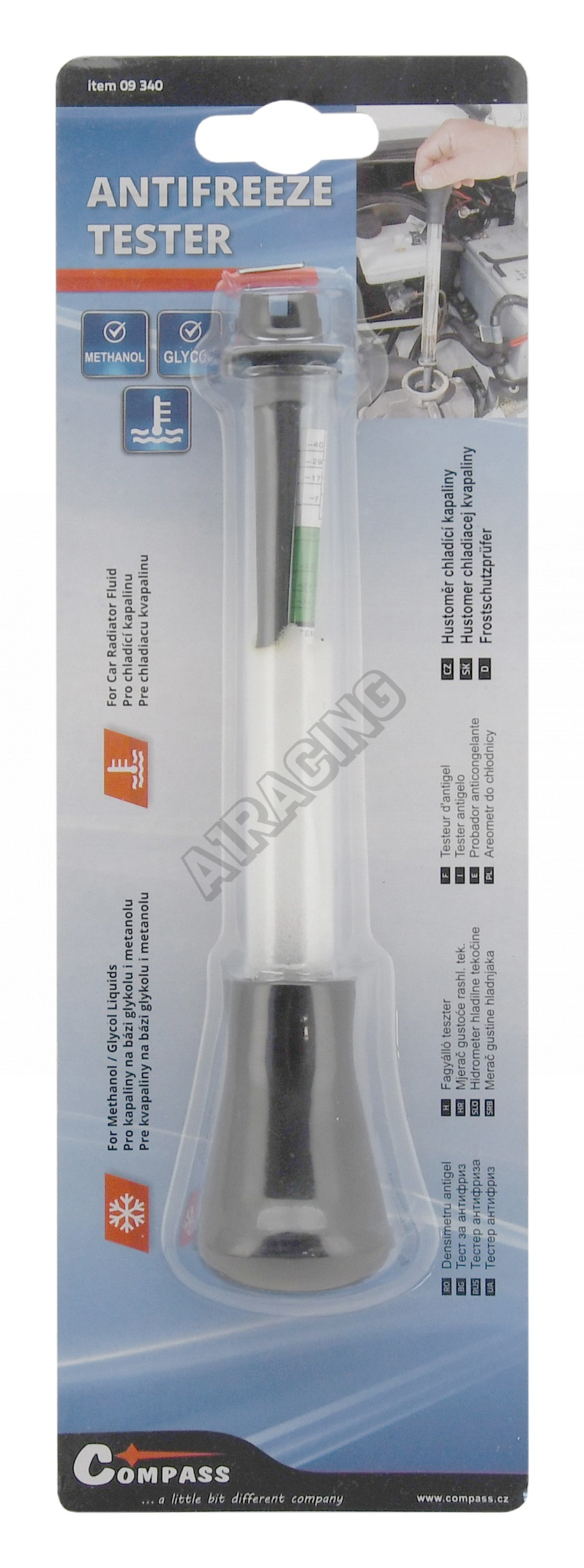 Pomocí tohoto hustoměru lze měřit kapaliny na bázi glykolu i chladicí kapaliny na bázi metanolu.