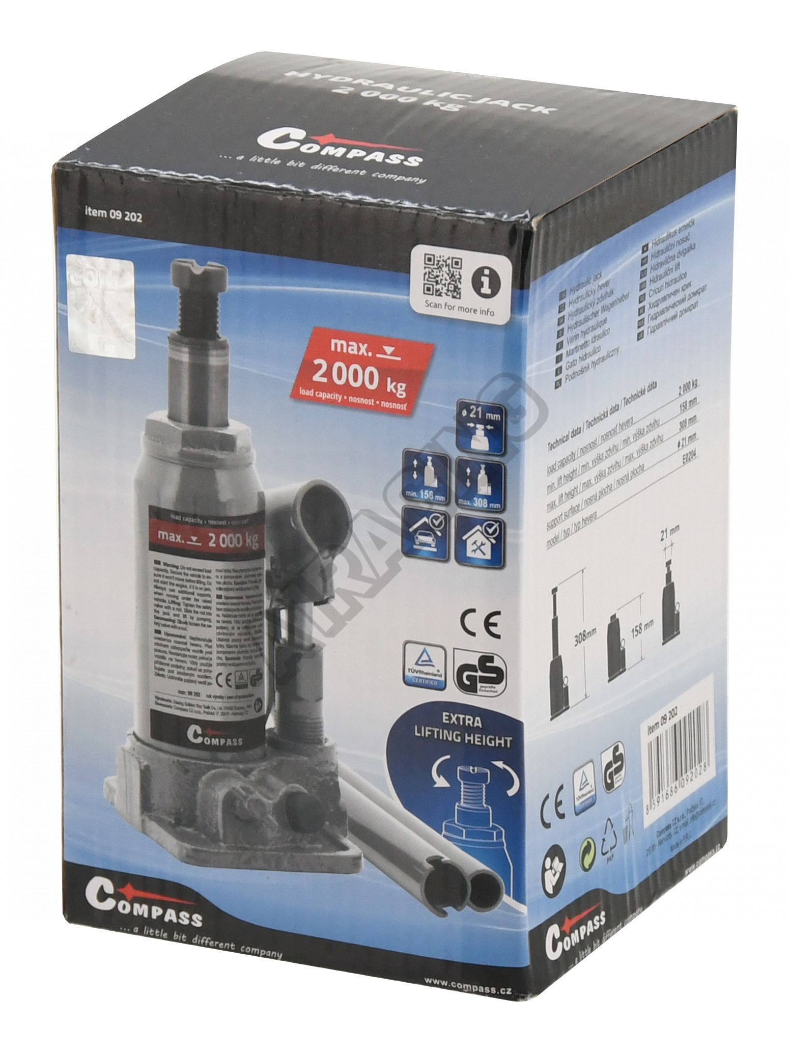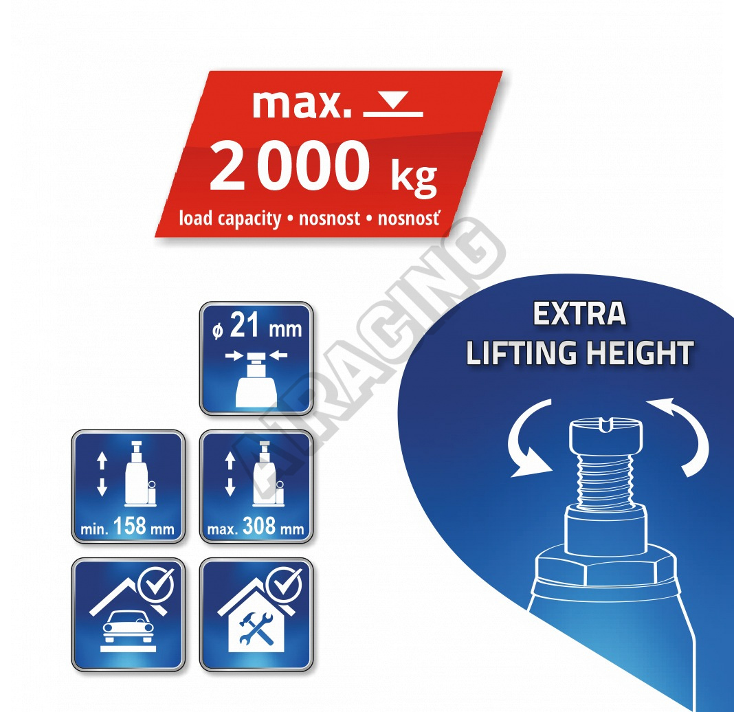 Hydraulický hever "panenka", nosnost 2 000 kg, zdvih 165 - 315 mm.