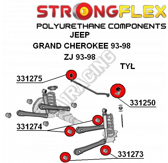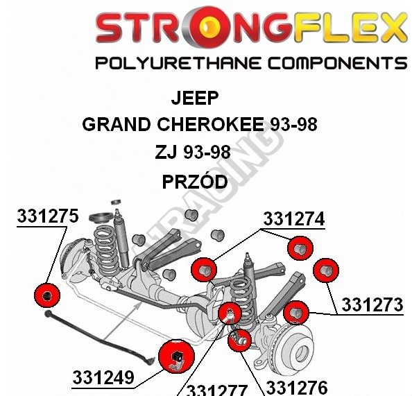 Jeep Grand Cherokee 1993-98 StrongFlex Sport (tvrdost 90ShA) kompletní sestava silentbloků na celé auto obsahuje :
