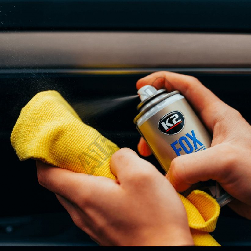 K2 FOX se velmi snadno používá. Stačí nanést na mikrovlákno nebo měkký hadřík, poté nanést na sklo a po zaschnutí otřít.