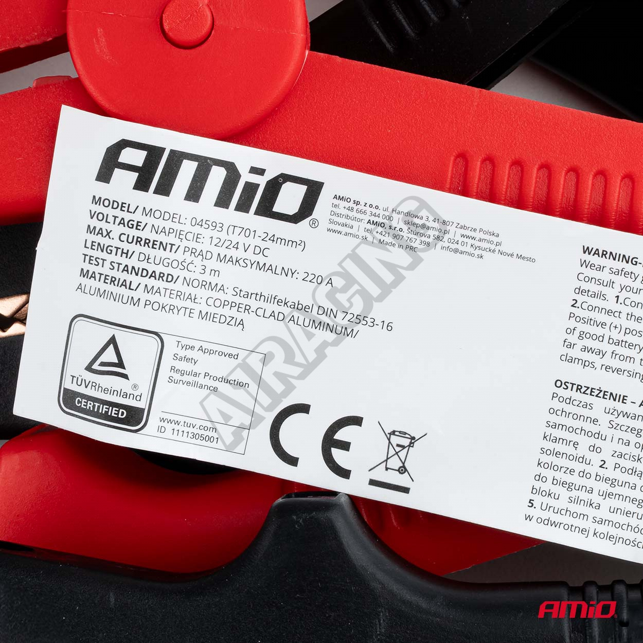Kabely startovací vodiče 220A 3m TÜV AMIO-04593