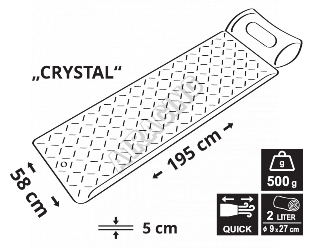 Karimatka Crystal je nafukovací a díky svému tvarování nabízí velmi komfortní použití.