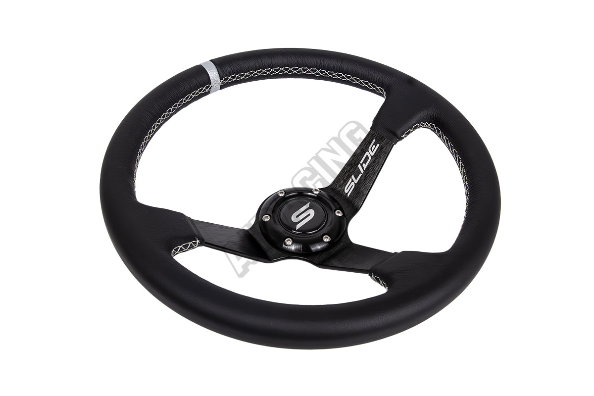Volant SLIDE je vysoce kvalitní příslušenství určené pro nadšence do automobilů, kteří chtějí zlepšit ergonomii, komfort a přesnost řízení svého vozidla. Díky své sportovní konstrukci a estetice se volanty SLIDE dokonale osvědčí ve vozidlech připravených na jízdu na okruhu. Tato verze volantu se vyznačuje výjimečným provedením z přírodní kůže, což zajišťuje pevný úchop a pohodlí při používání. Navíc, jemný pásek na obruči nejen dodává elegantní, sportovní charakter, ale také usnadňuje přesné určení centrální polohy volantu, což zvyšuje kontrolu nad vozidlem.