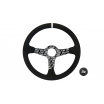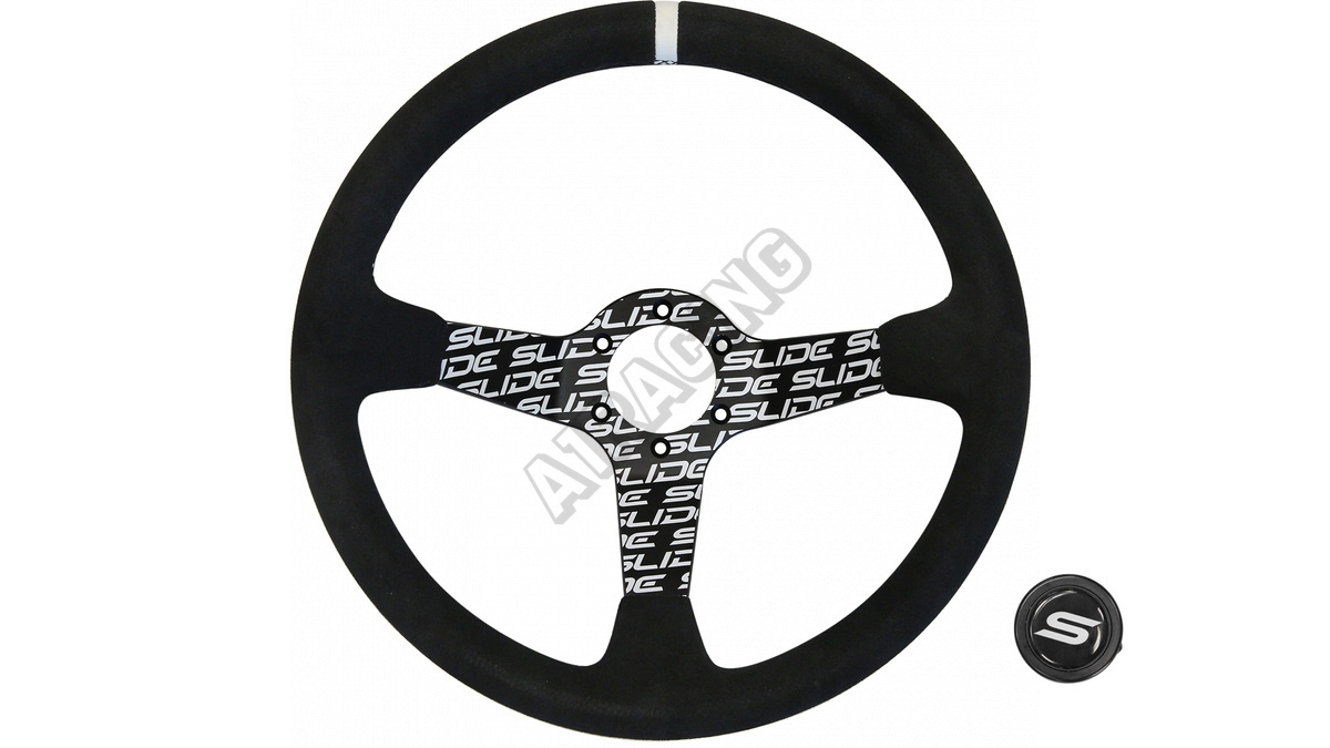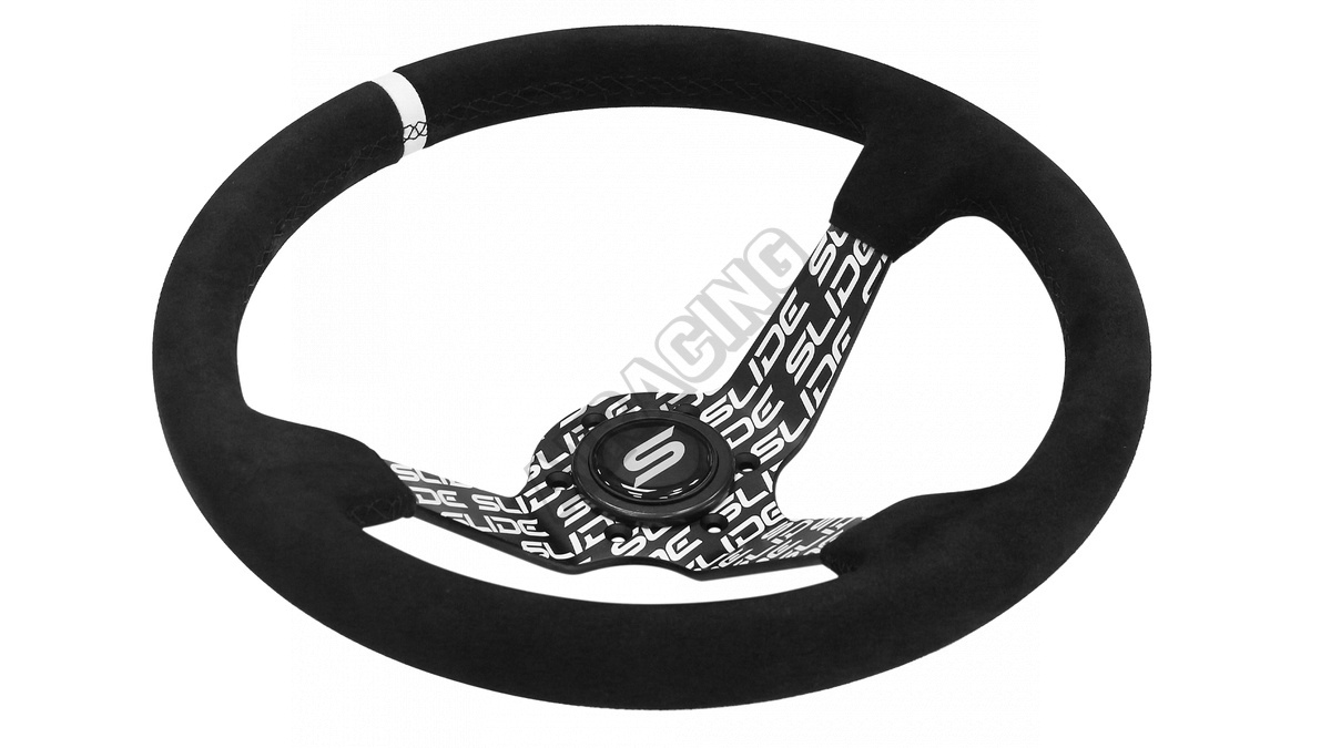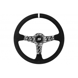 Volant SLIDE je vysoce kvalitní příslušenství určené pro automobilové nadšence, kteří chtějí zlepšit ergonomii, komfort a přesnost řízení svého vozidla. Díky své sportovní konstrukci a estetice se volanty SLIDE dokonale osvědčí ve vozidlech připravených na jízdu na okruhu. Tato verze volantu se vyznačuje výjimečným provedením ze semiše a střední část je ozdobena hydro-grafickým vzorem, což jí dodává unikátní charakter, stříbrný pruh na obruči usnadňuje přesné určení centrální polohy volantu, což zvyšuje kontrolu nad vozidlem. Semiš zajišťuje pevný úchop a hydro-grafický vzor ve střední části nejen přitahuje pozornost, ale také dodává volantu originální vzhled.