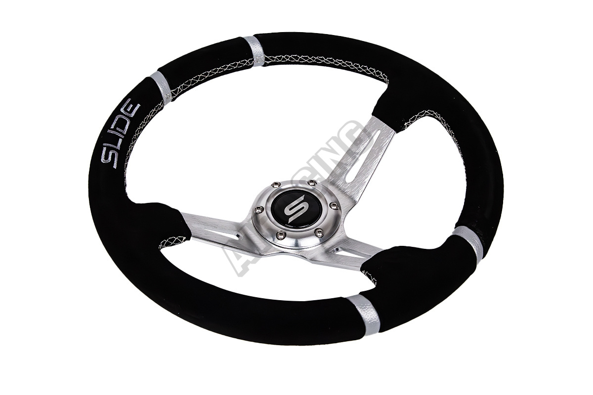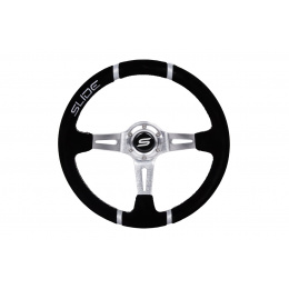 Volant SLIDE je vysoce kvalitní příslušenství určené pro automobilové nadšence, kteří chtějí zlepšit ergonomii, komfort a přesnost řízení svého vozidla. Díky své sportovní konstrukci a estetice se volanty SLIDE dokonale osvědčí ve vozidlech připravených na jízdu na okruhu. Tato verze volantu se vyznačuje výjimečným provedením z semiše, což zajišťuje jistý úchop a pohodlí při používání. Navíc, dvojité stříbrné pruhy na obruči nejen dodávají sportovní charakter, ale také usnadňují přesné určení centrální polohy volantu, což zvyšuje kontrolu nad vozidlem.
