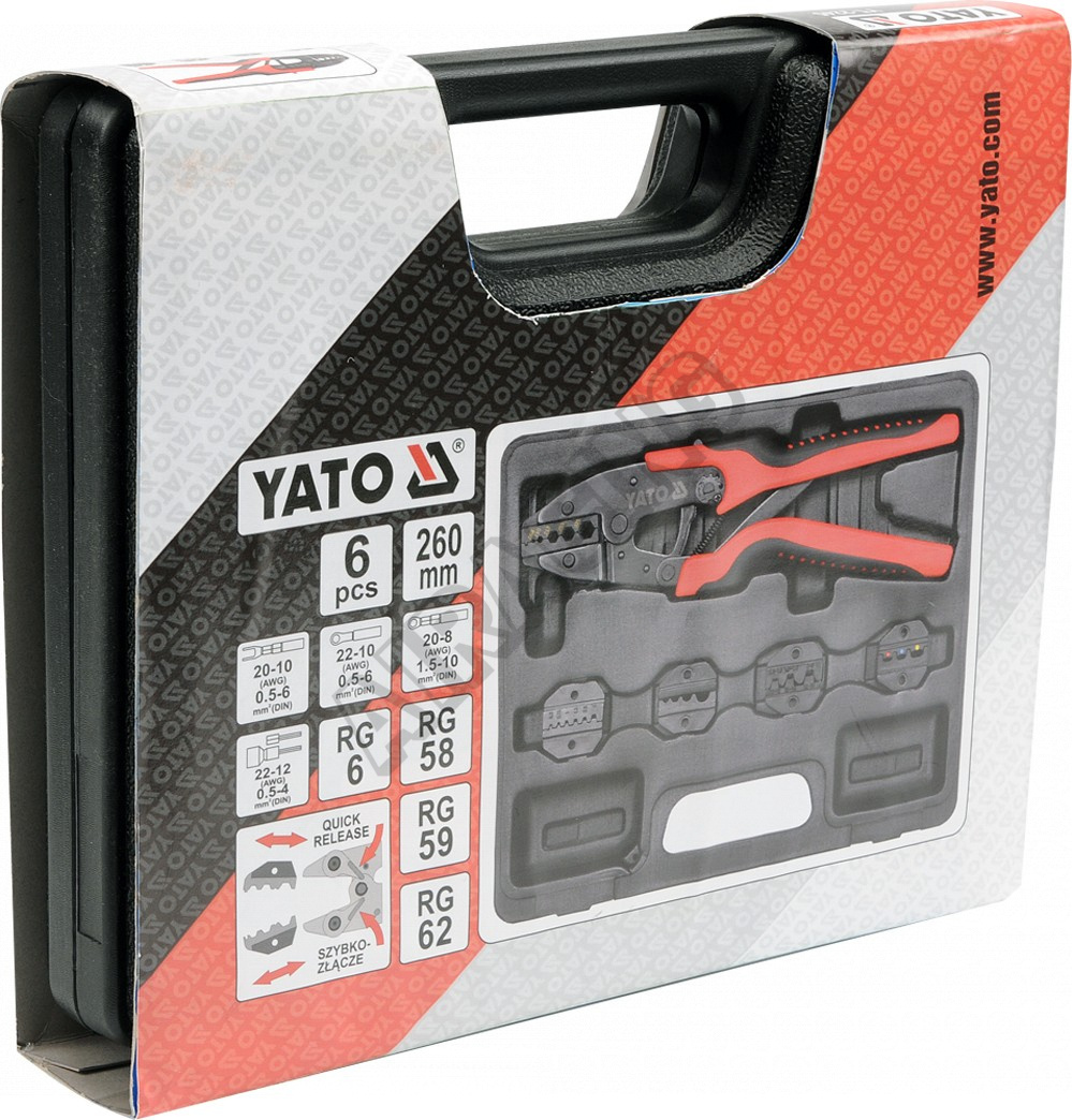 Kleště YT-2245 pro krimpování nejběžnějších typů konektorů, mají zčernalý povrch, který chrání před korozí a dvousložkovými plastovými úchyty na rukojeti. Přesná konstrukce čelistí usnadňuje počáteční zasunutí konektoru a delší než standardní rukojeti a západkový mechanismus jeho přesné a pevné upnutí bez použití velké síly.