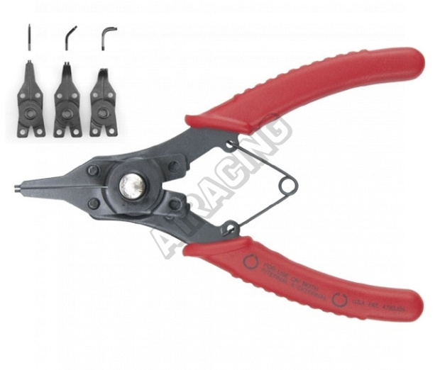 Kleště na segerovy pojistky, délka 160 mm se čtyřmi vyměnitelnými čelistmi.