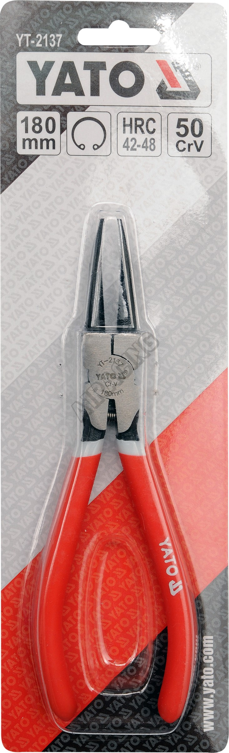 Kleště na segerovy pojistky, délka 180 mm, vnitřní. Zhotoveno z kvalitní CrV oceli a potahem rukojet