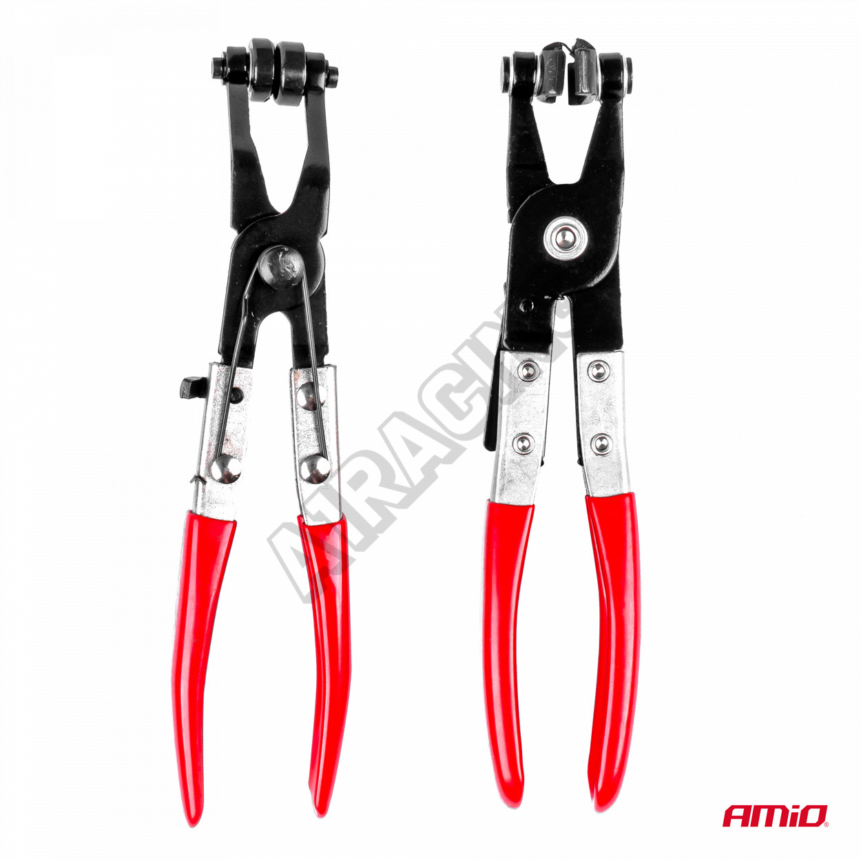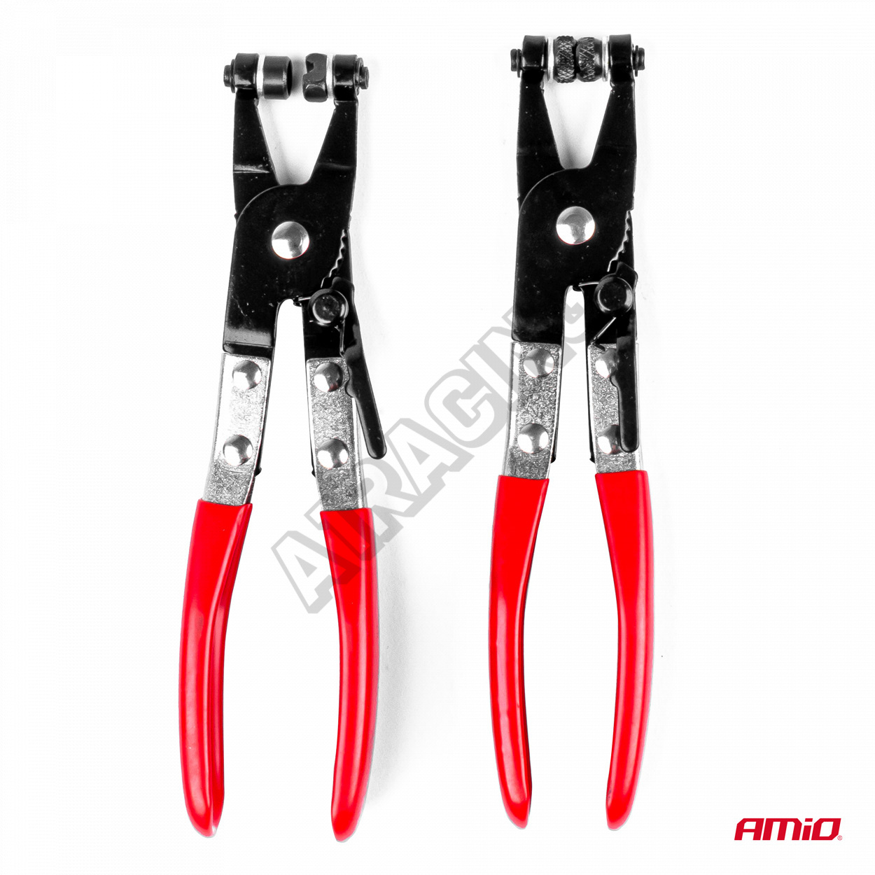 Sada kleští na svorky, která zaručuje pohodlí při práci v autoservisu nebo domácí dílně. Všechny prvky jsou vyrobeny z vysoce kvalitních materiálů. Kleště s otočnými čelistmi se hodí pro většinu typů pružných svorek, otočné čelisti jsou vroubkované pro dobré držení velkých i malých svorek pod jakýmkoli úhlem. Západková blokáda umožňující udržení čelistí v 5 různých polohách. Blokáda umožňuje bezpečné držení napnutého pásku.