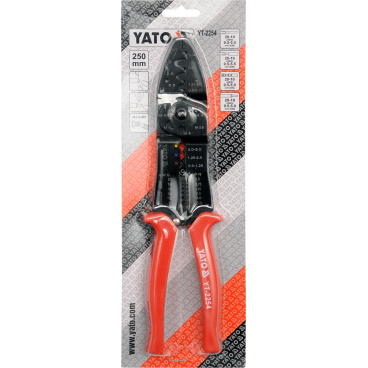 Kleště YT-2254 vyrobené ze silné kalené oceli se zčernalým povrchem, který chrání před korozí. Rukojeti zajištěné plastovými krytkami.