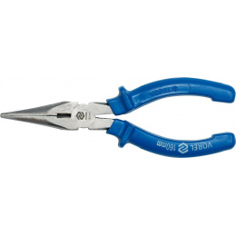 Prodloužené ohnuté kleště 160 mm. Povrch zoubkovaných čelistí s profilovanými břity pro střihání drátu a hřebíků. Rukojeti potažené pohodlnými plastovými kryty.