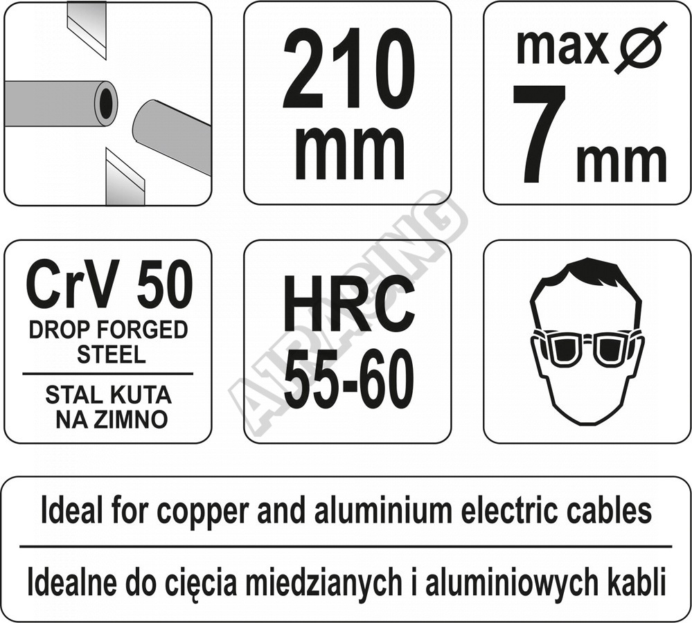 Vhodné pro stříhání Al a Cu vodičů do průměru 7 mm.