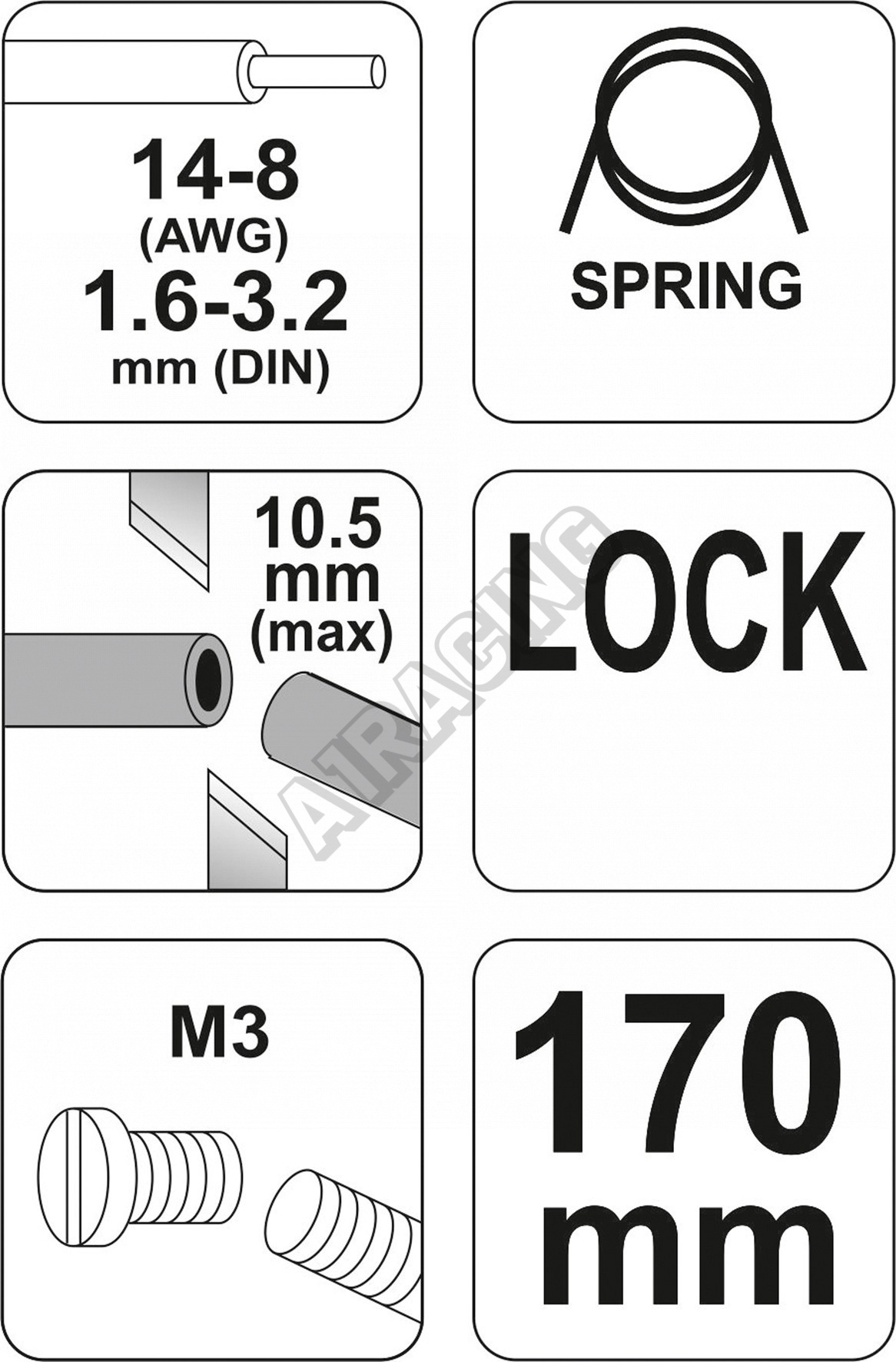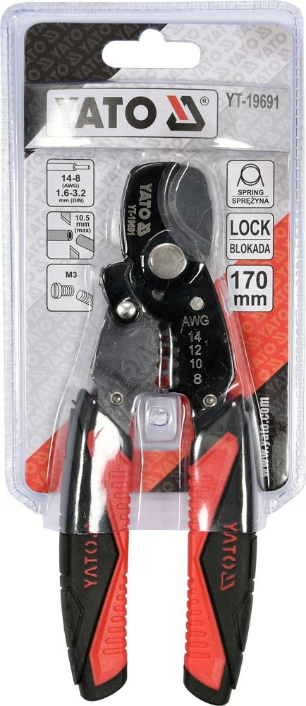 Vhodné pro stříhání šroubů -M3, a vodičů průměrů 1,6 - 3,2 mm (izolace 10,5 mm max.).