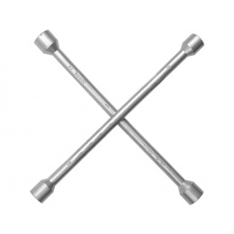 Celokovový klíč ve tvaru kříže, který je určen pro povolování či utahování matic kol automobilů.Na j