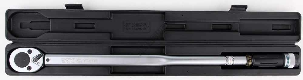 Momentový klíč Yato s rozsahem 100 - 500 Nm se zakončením 3/4". Samotné nastavení momentu, se provád