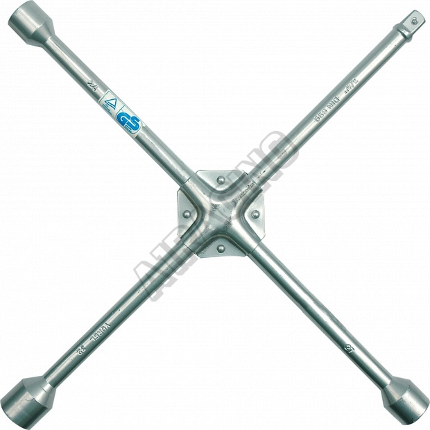 Celokovový klíč ve tvaru kříže, který je určen pro povolování či utahování matic kol automobilů.