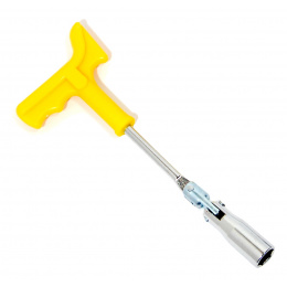Kovový klíč (16 mm) určený k montáži nebo demontáži zapalovacích svíček automobilu. Kloubová redukce a speciální ergonomické zakončení klíče pro snazší manipulaci.