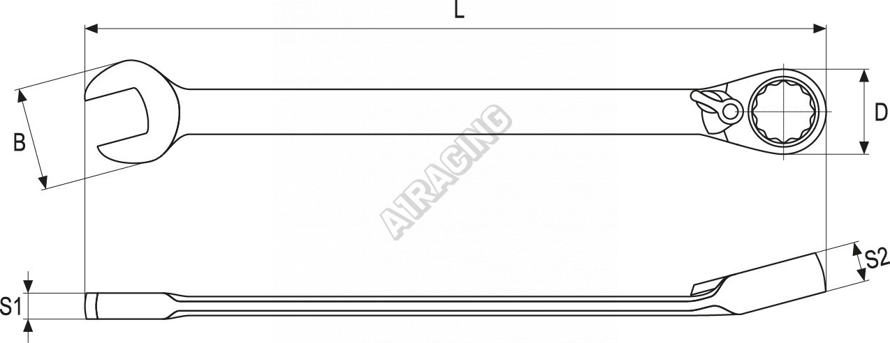 Očkoplochý klíč s dvanáctihranným profilem opatřeným ráčnou s jemným 72 zubým chodem a přepínačem levého/pravého chodu.