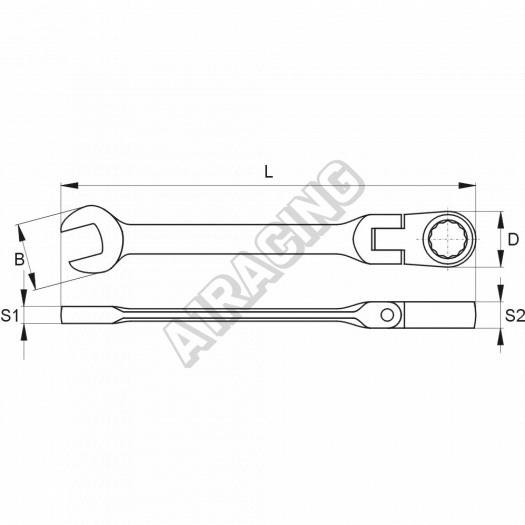 Klíč očkoplochý ráčnový s kloubem s dvanáctihranným profilem opatřeným ráčnou s jemným 72 zubým chodem.