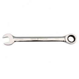 Ráčnový očkoplochý klíč Yato - na jedné straně klasický stranový klíč, na straně druhé očkový klíč s dvanáctihranným profilem vybaveným ráčnou s jemným dělením 72 zubů. Tělo klíče je vyrobeno z chromvanadiové oceli CrV6140. Povrch je vyleštěn do vysokého lesku.