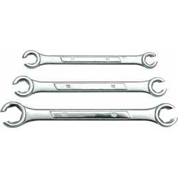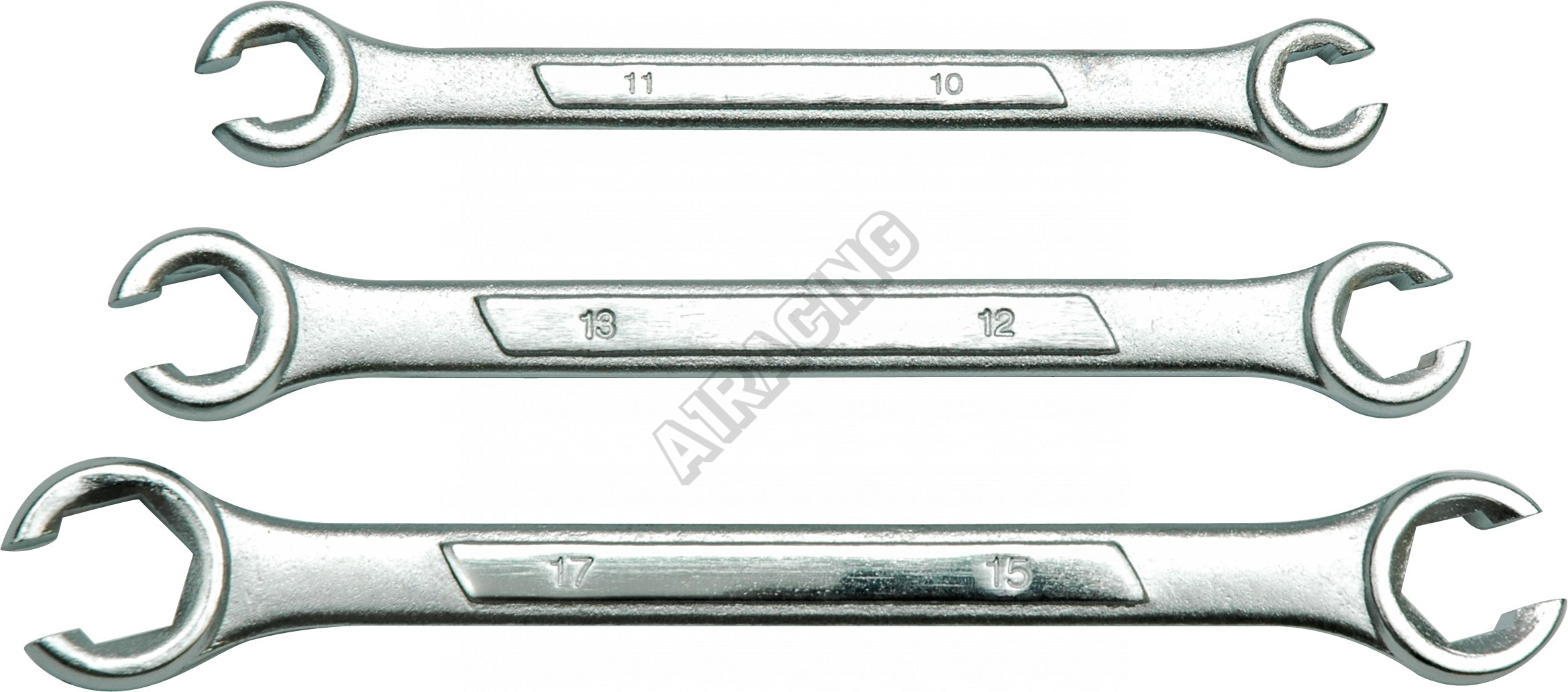 Sada klíčů brzdové hadice. Polootevřená konstrukce umožňuje volný přístup k maticím brzdové hadice. Rozsah velikostí 11x11mm, 12x13mm, 15x17mm.