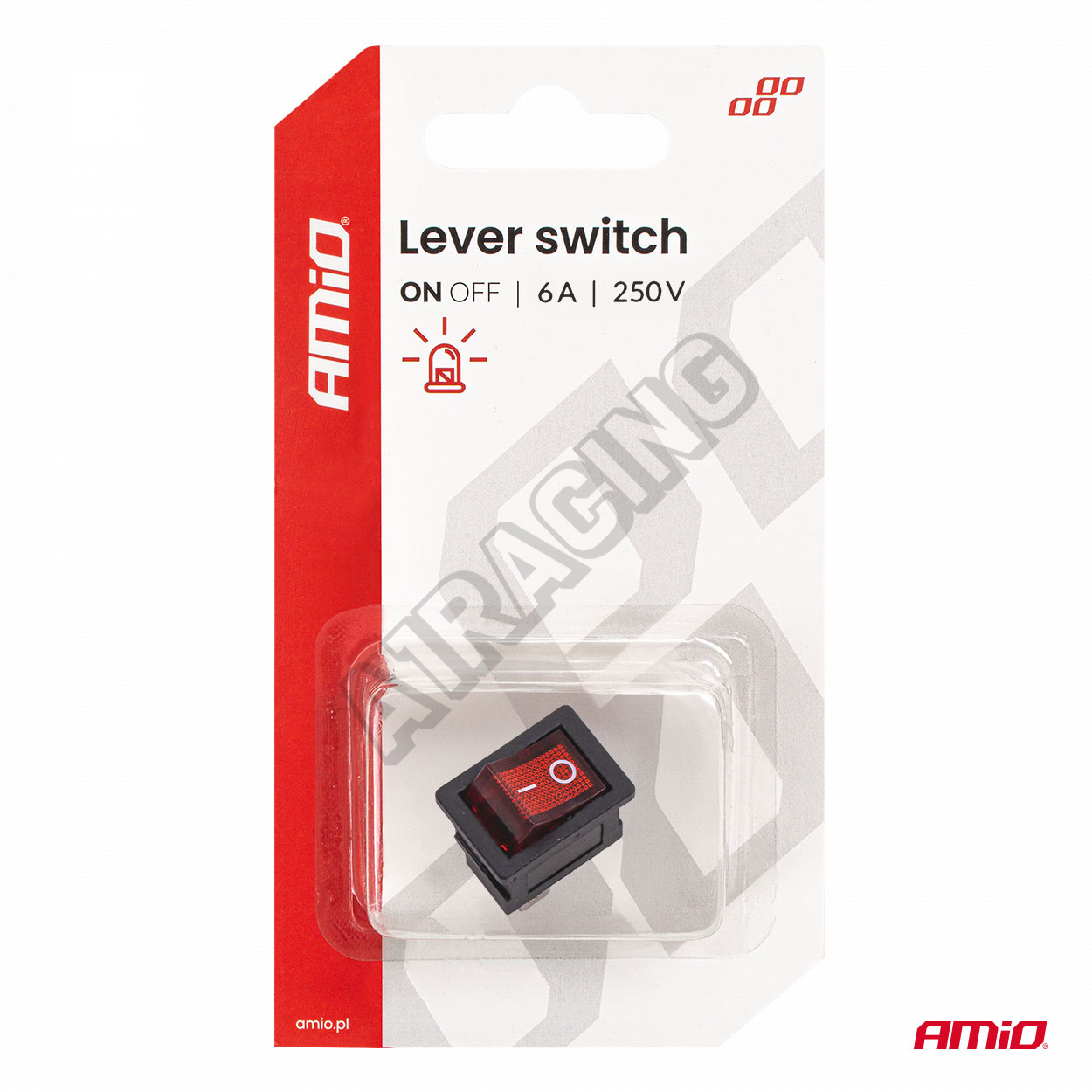 Kolébkový spínač s červeným podsvícením 6A 250V AMIO-04439