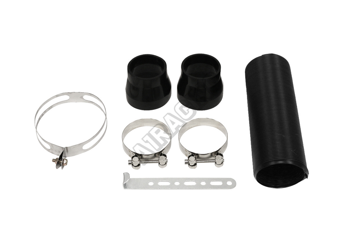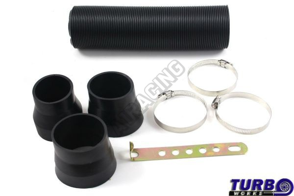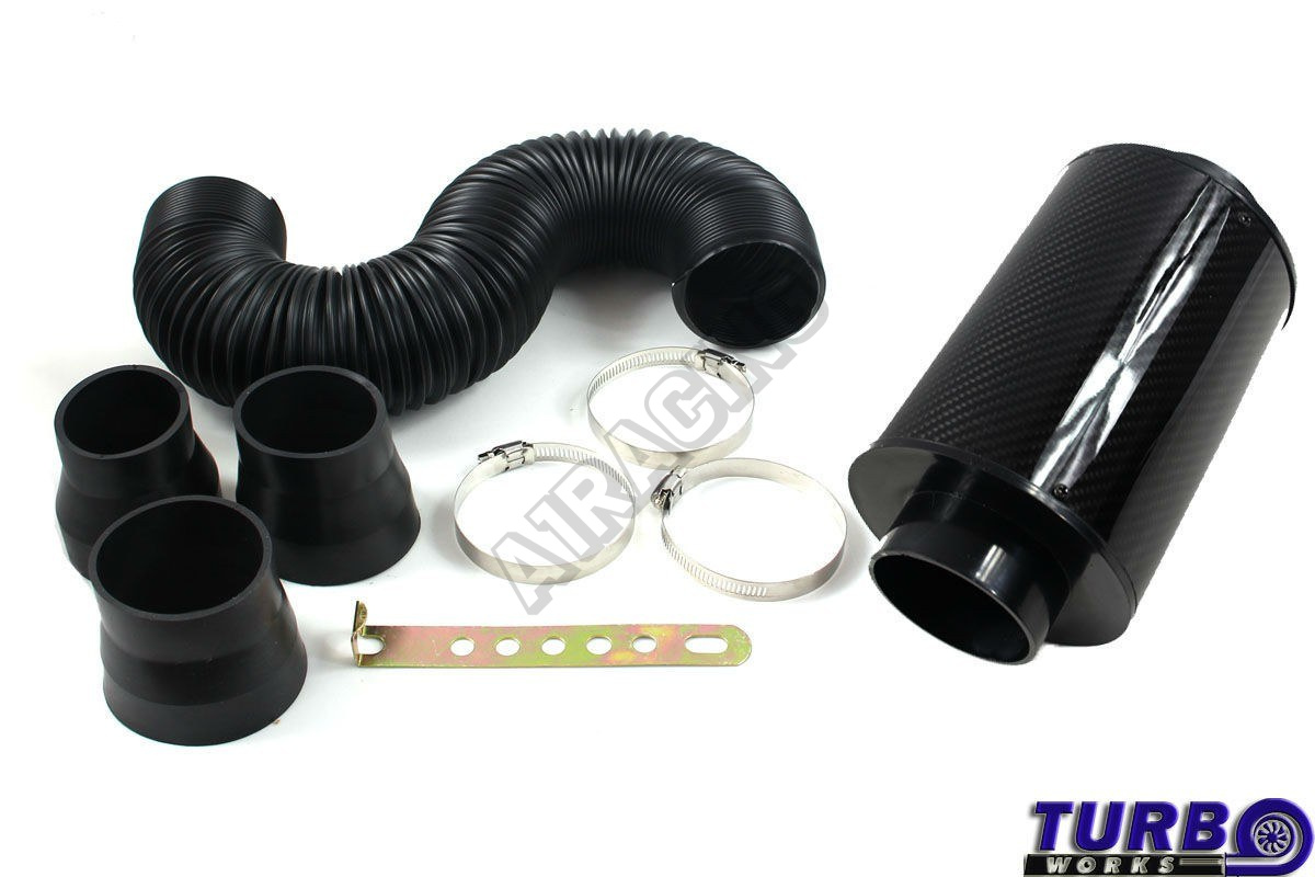 Značkový set univerzálního sání firmy TURBOWORKS, belaní obsahuje velký filtr s krytem a hadicí o průměru 77 mm + 3 redukce 60,65 a 70 mm, dále 3 spony na uchycení + uchycovací člen na karoserii,