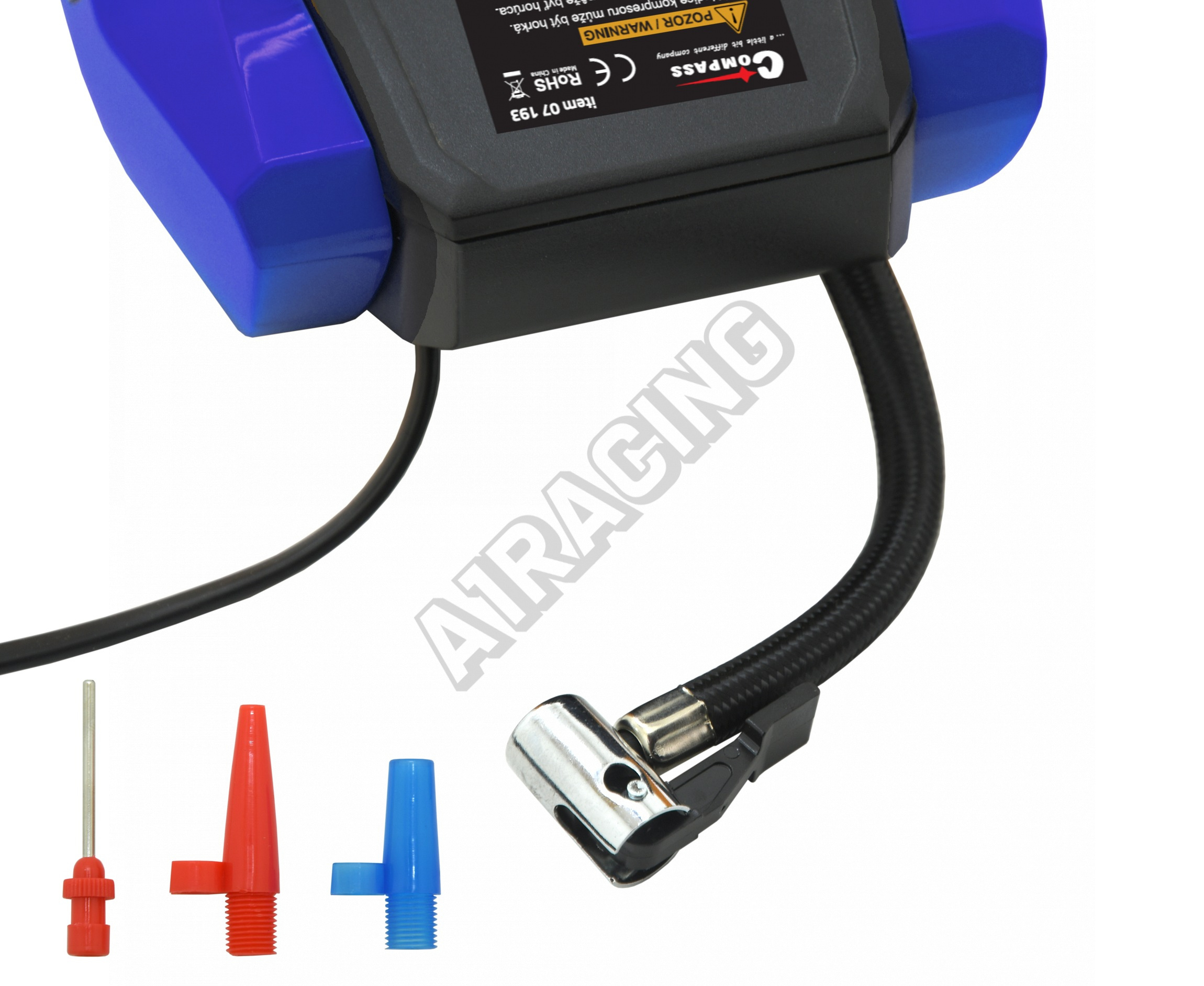 Vysoce výkonný kompresor s Auto-stop systémem a napájením z 12V zástrčky zapalovače vozidla.