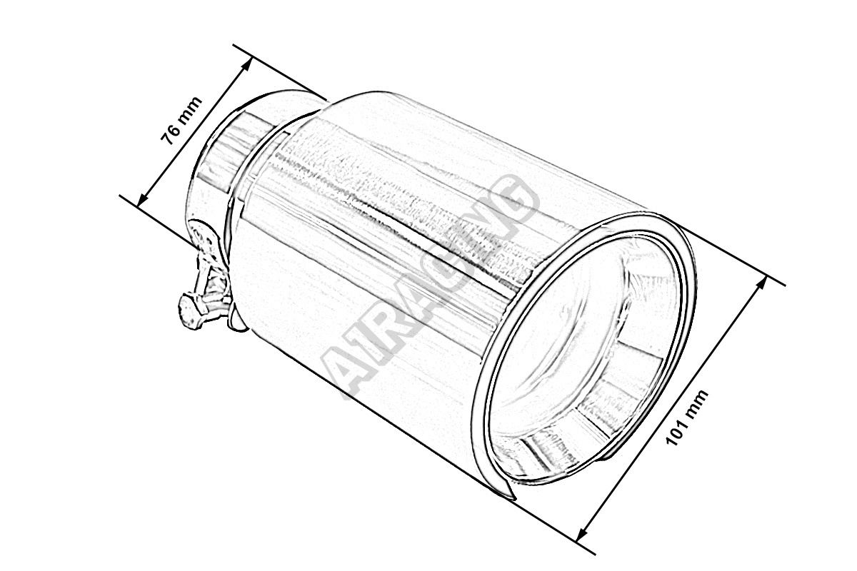 Koncovka tlumiče s leštěným povrchem. Koncovka výfuku z nerezové oceli (304SS). Upínací objímka na v