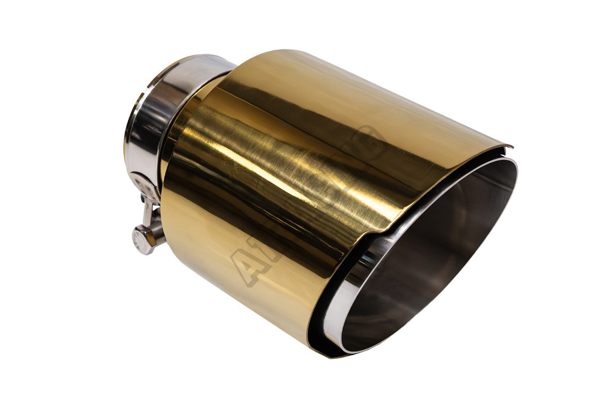 Koncovka tlumiče s leštěným povrchem. Koncovka výfuku z nerezové oceli (304SS). Upínací objímka na v