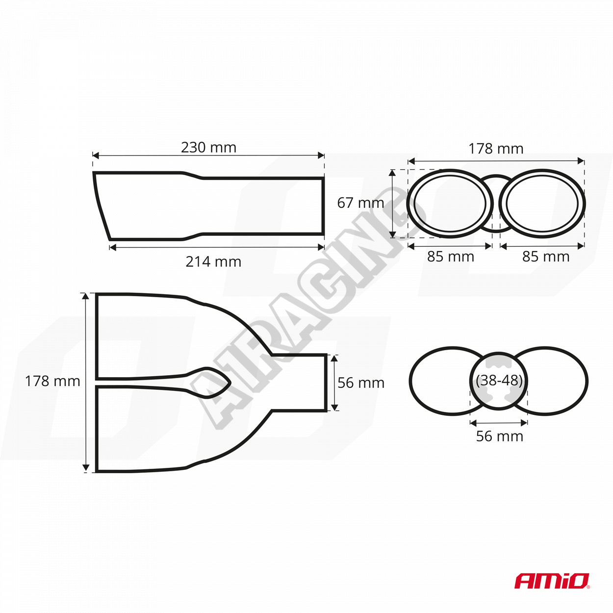 Koncovka výfuku nerez dual ovál Celkové ozměry výfokové koncovky jsou uvedeny na fotce v galerii fo