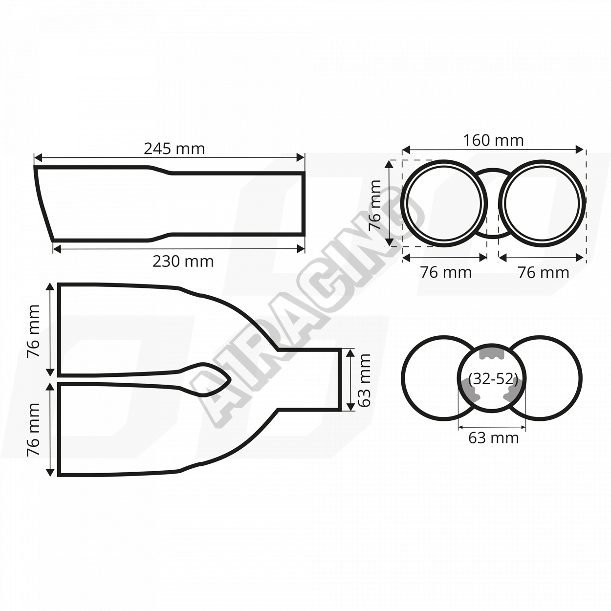 Univerzální koncovka dodávající elegantní sportovní vzhled. Díky širokému rozsahu regulace úchytů se hodí pro většinu automobilů (dva způsoby montáže: pro přišroubování pomocí montážních šroubů nebo pro přivaření).