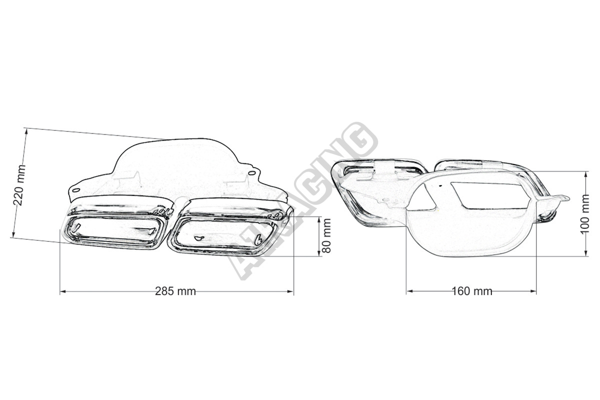 Koncovka tlumiče 285x80mm vstup 160x100mm Mercedes W212 Leštěná Sada247.98 EUR