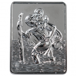 Kovová hranatá plaketka Svatý Kryštof - ochránce řidičů 35x45 mm