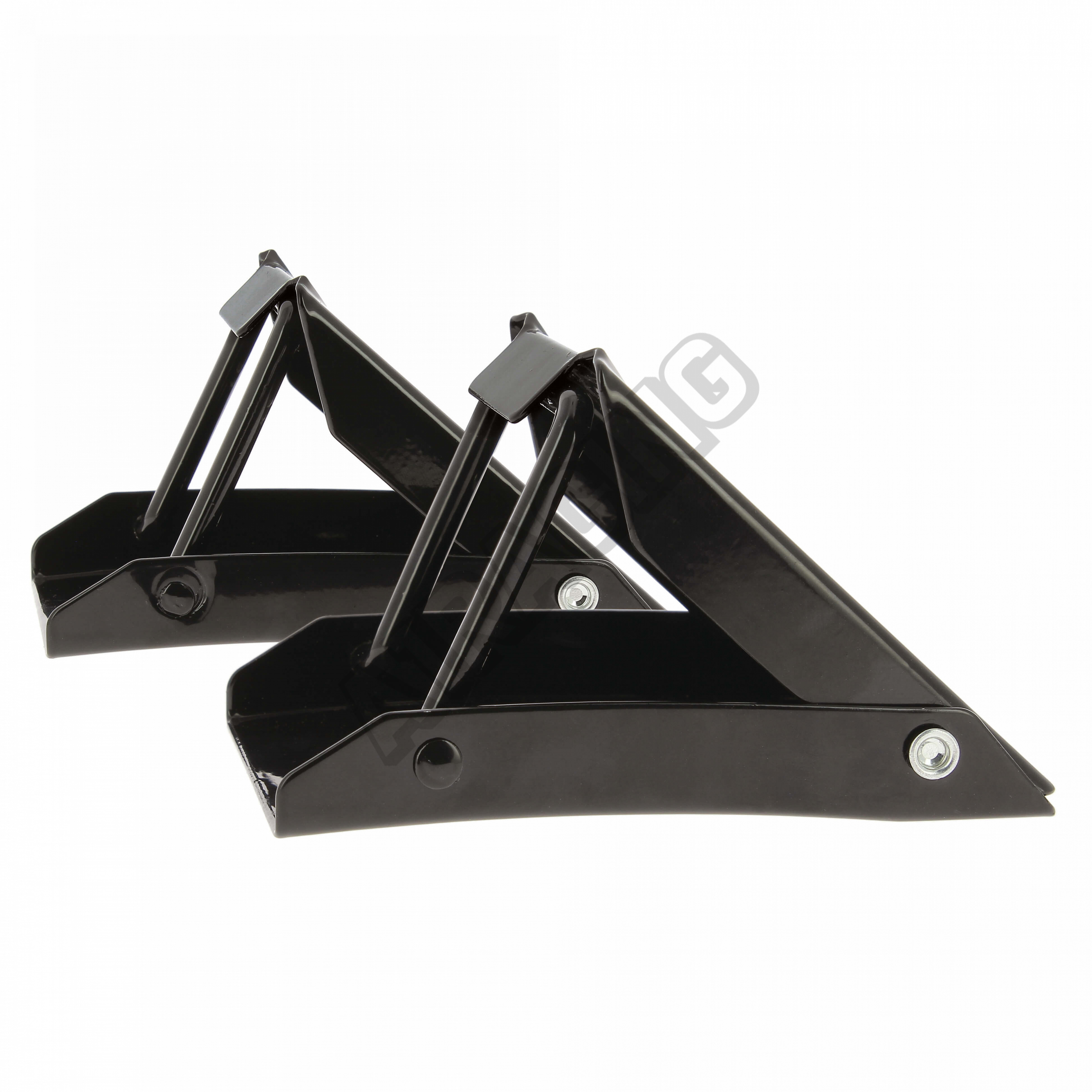Používá se jako pojistka u stojícího auta, aby se nerozjelo. Masivní provedení, které opravdu nezklame. Nosnost těchto skládacích klínů je do 2000 kg. Jednoduché složení i rozložení. Povrch je ošetřen práškovou černou barvou. Cena je za 2 kusy.
