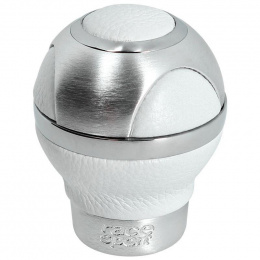Kožená bíĺá hlavice řadící páky s alu broušeným topem
