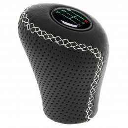 0 recenze produktu Kožená hlavice řadící páky černá/bílé prošití (s přizvedáváním táhla pod řazení)