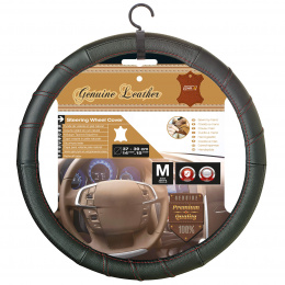Velmi kvalitní prémiové kožené provedení s červeným designovým stehem. Tento potah je po obvodu nepravidelný s prošitím, které snižuje sklouzávání rukou. Určeno pro průměr volantu 37-39 cm.
