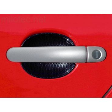 2x kryt kliky - plný design ze stříbrného matného ABS opatřený oboustrannou pěnovou lepenkou