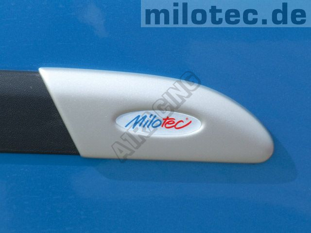 Kryty originálních bočních ochranných lišt v moderním stříbrném matném designu s logem Milotec.