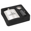 Set 175 ml placatky s nálevkou z nerezové oceli, se 4x nerezovými panáky v praktickém pouzdře.