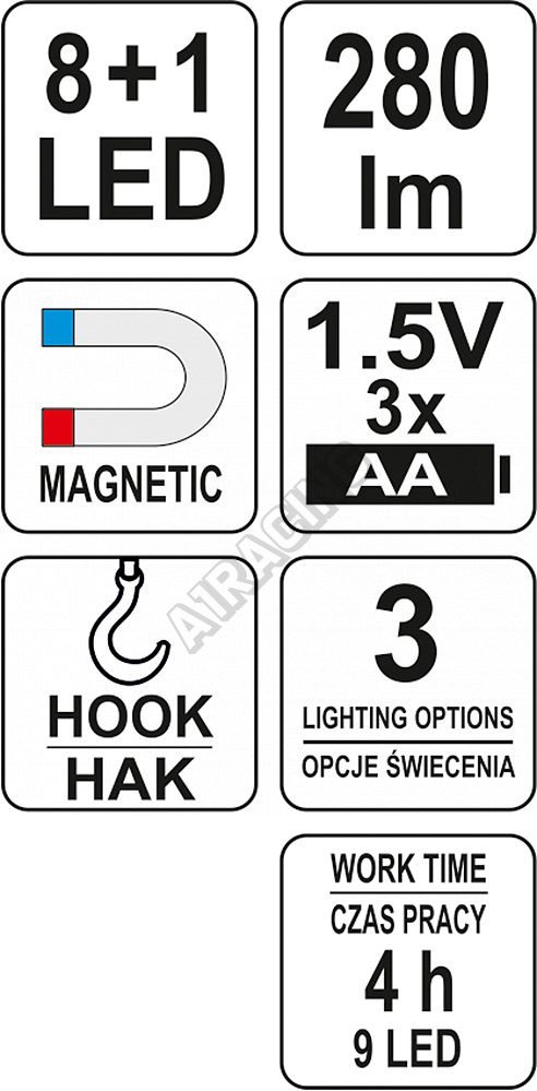 Lampa montážní 8+1 LED, hák+magnet10.94 EUR